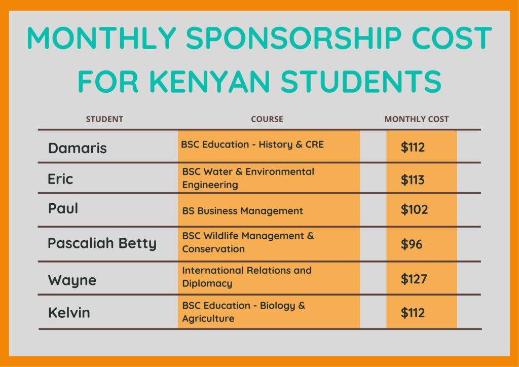 Your contribution will cover their university tuition fees, accommodation, books and living costs.